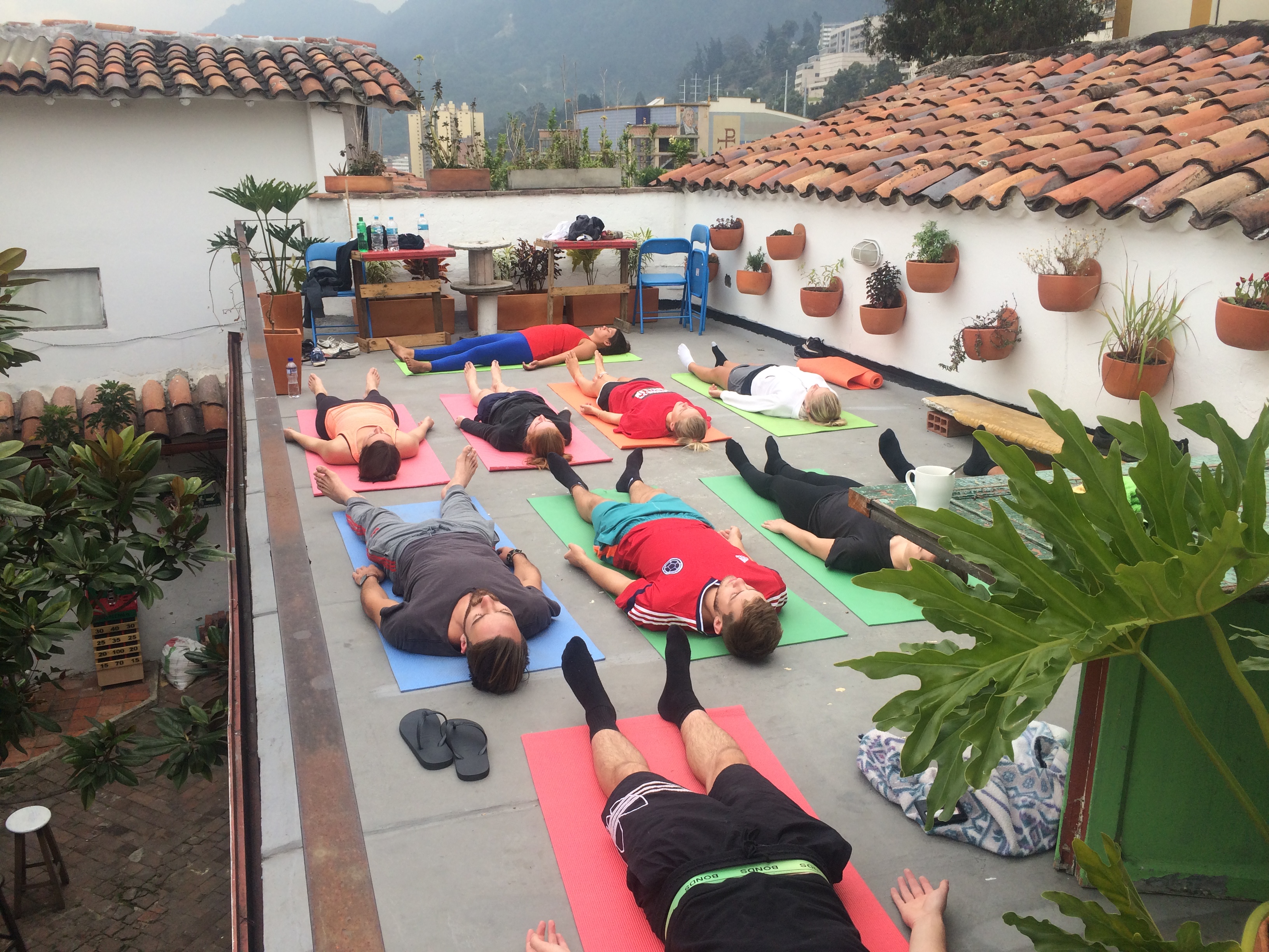 En ik heb zelfs een keer yoga gedaan hier op het dak (ook al is deze foto van vanochtend, toen ik slaperig zat toe te kijken)